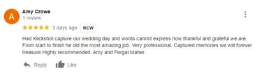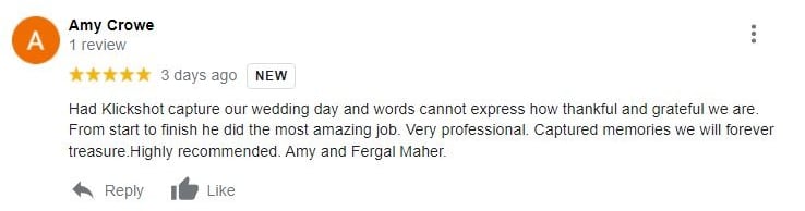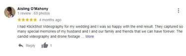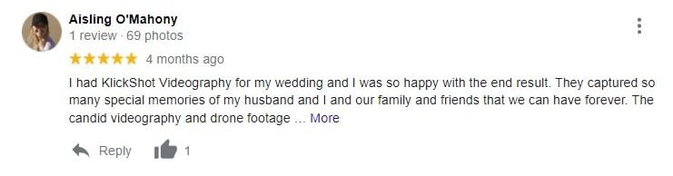 Welcome to KlickShot Studio, a luxury wedding videography company based in Ireland. Our team creates beautiful and cinematic wedding films that are tailored to each couple's unique love story. Our approach to videography has made us one of the top videographers in the industry, and our style is renowned for its authenticity and timelessness. We believe that every wedding is a unique and special event that deserves to be captured in a way that truly reflects the couple's personalities and love for each other. We would be honored to tell your love story through film and to create a keepsake that you will cherish for a lifetime. Contact us to learn more about our services and how we can capture the magic of your wedding day.